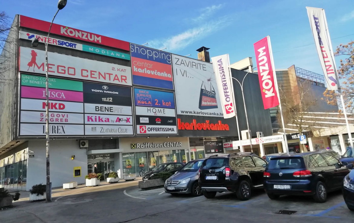 Na atraktivnoj lokaciji na adresi Trg Milana Šuflaja 1 u Karlovcu – poznati trgovački centar Karlovčanka, daju se najam poslovni prostori,